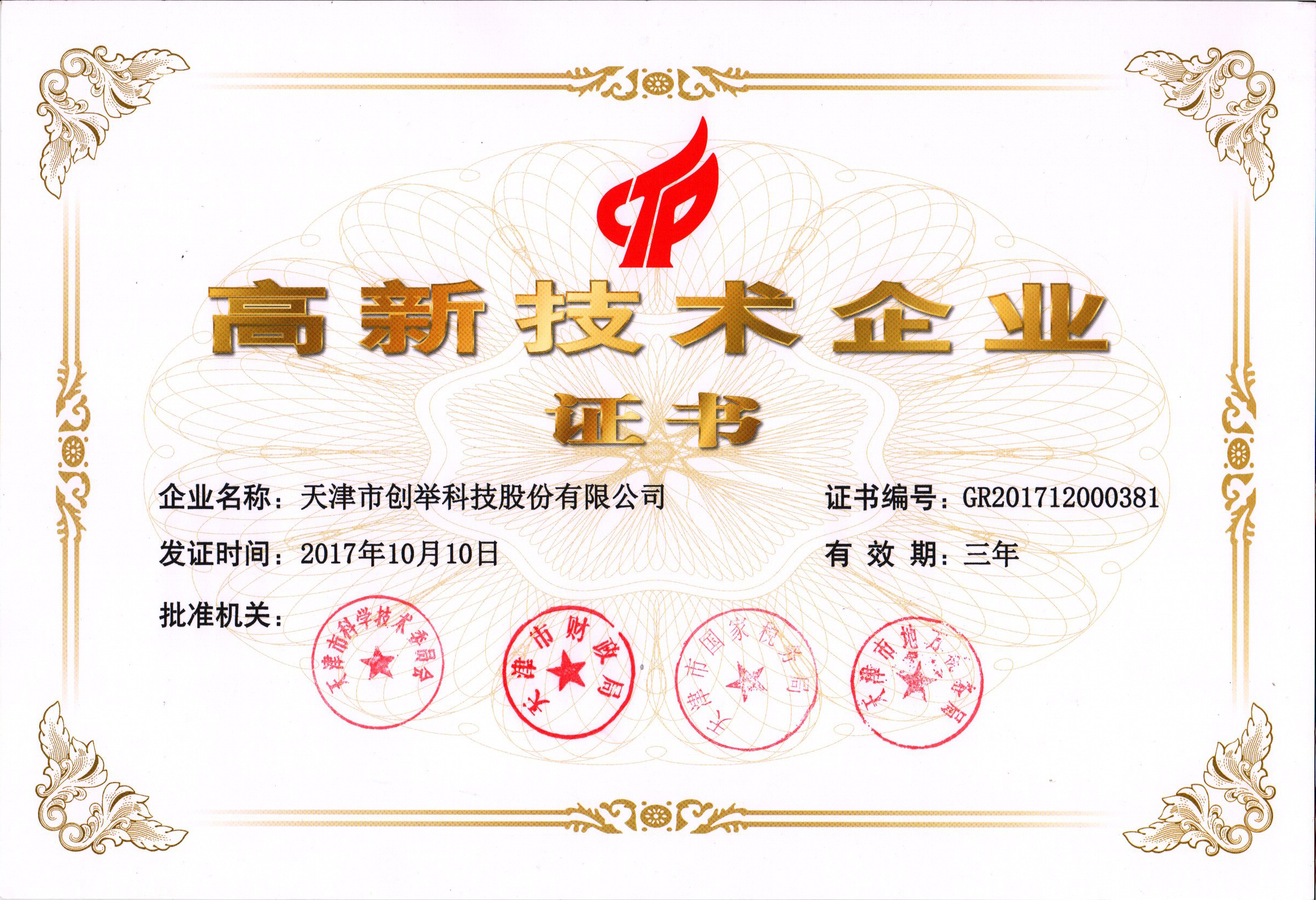 2017年 公司喬遷新址,同年完成股份制改造更名為天津市創(chuàng)舉科技股份有限公司,成功掛牌新三板。