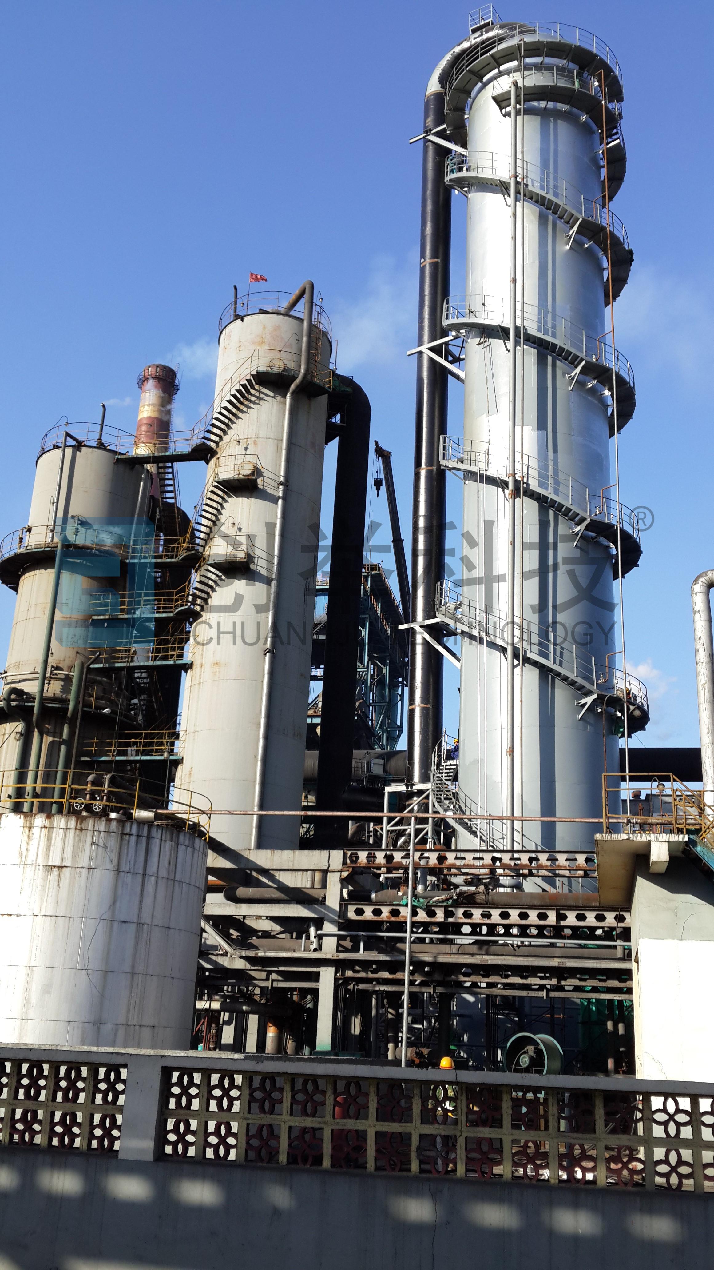 該項(xiàng)目由我公司總包設(shè)計(jì)和制作。于2013年底完工并投產(chǎn)至今,單塔后煤氣H2S指標(biāo)≤50mg/Nm3。其煤氣量在1300 00Nm3/h,單塔運(yùn)行,脫硫塔塔徑達(dá)DN9600,此類大直徑設(shè)備在國內(nèi)也屬罕見。我公司克服了塔體與內(nèi)件設(shè)計(jì)中的諸多問題,同時結(jié)合多年設(shè)計(jì)和現(xiàn)場運(yùn)行調(diào)試經(jīng)驗(yàn),在設(shè)備設(shè)計(jì)的同時,進(jìn)一步優(yōu)化了脫硫工藝,最終一次開車調(diào)試成功,得到了業(yè)主的認(rèn)可與贊賞。