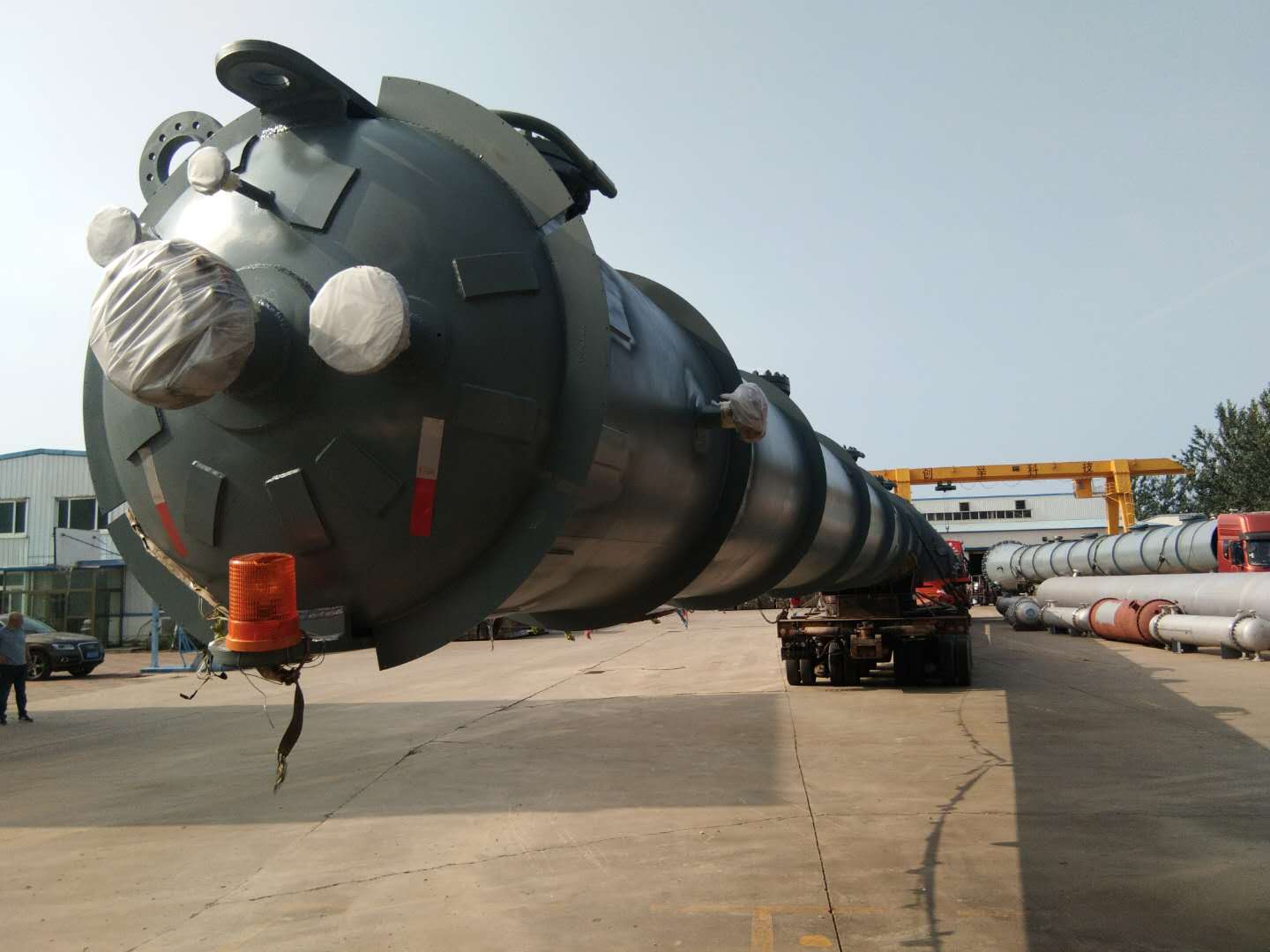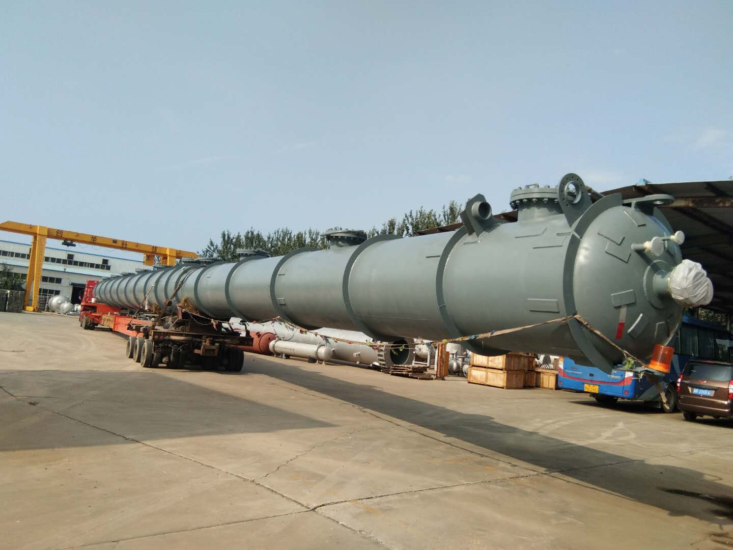 近日發(fā)貨的為脫C6塔,該塔除去裙座長度為45.4米,是我司迄今為止發(fā)貨的最長設(shè)備,該批設(shè)備的成功制作完成發(fā)貨標(biāo)志著創(chuàng)舉公司在超大超長型塔設(shè)備設(shè)計制作方面又邁上了一個新的臺階。