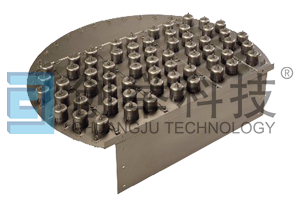泡罩:又稱泡帽,是泡罩塔板的主要構(gòu)件,有圓形泡罩及條形泡罩二類,目前主要采用圓形泡罩,它的外形如鐘罩狀。在泡罩的壁面開(kāi)有很多齒縫,其形狀有矩形,三角形及梯形。泡罩內(nèi)有升氣管,在泡罩與升氣管之間形成回轉(zhuǎn)空間。升氣管固定在塔板上,氣相通過(guò)升氣管進(jìn)入回轉(zhuǎn)空間,以一定的噴出速度由齒縫噴出,與塔板上的液體形成鼓泡接觸,進(jìn)行傳質(zhì)過(guò)程。工業(yè)上常用泡罩的下徑有50、80、100、150mm等幾種。